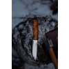 Čepel je vyrobena z nerezové oceli Sandvik 12C27 – odolné vůči korozi, snadno se udržuje a skvěle drží ostří. Rukojeť z masivního kadeřavého břízového dřeva je ergonomicky tvarovaná a dobře padne do ruky. Každý kus je jedinečný díky přírodní kresbě dřeva.