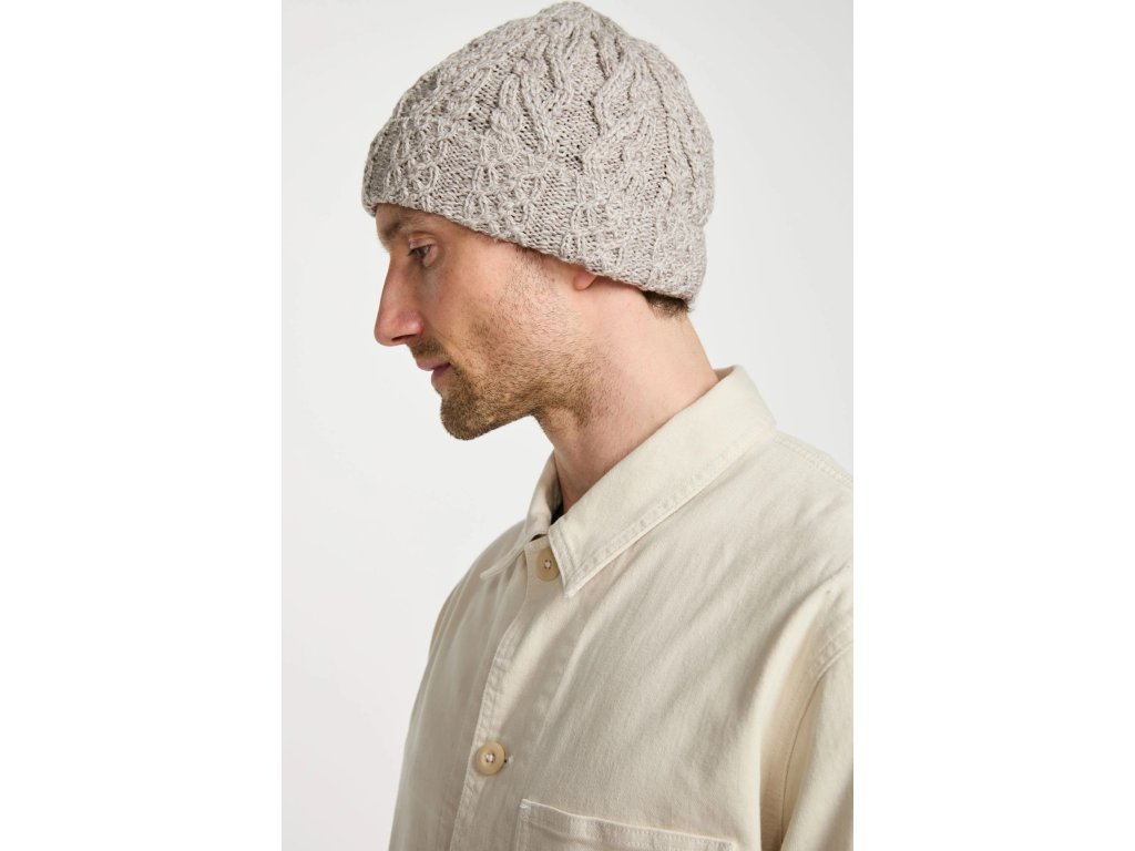Luxusní zimní čepice z jemné merino vlny, inspirovaná tradičními aran vzory z Irska.