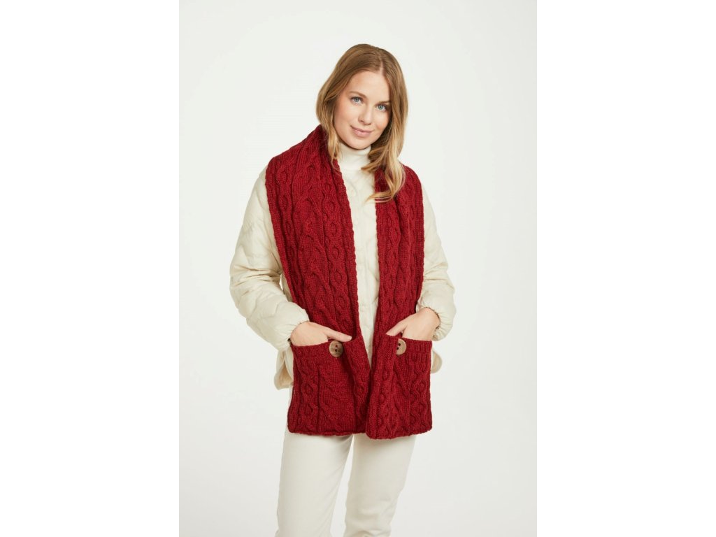 Irská pletená šála s kapsami-A721/014