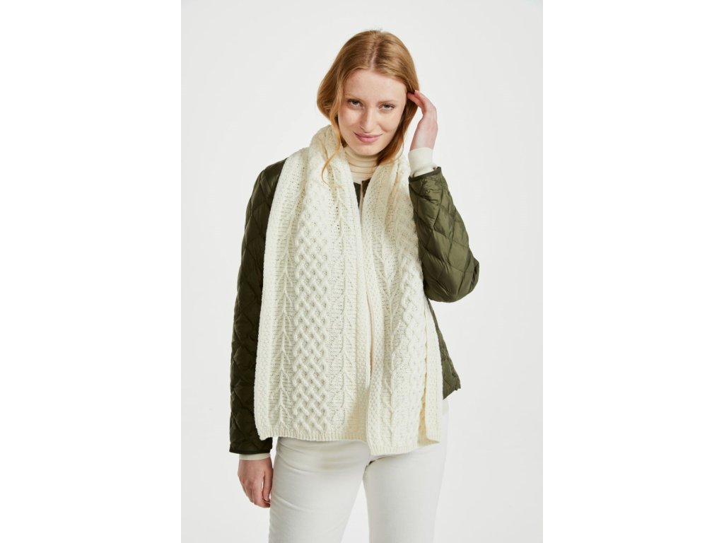 Šála z merino vlny vychází z tradičního irského úpletu. Střed tvoří motiv trellisu a po stranách jej doplňuje vzor známý jako Tree of Life, který se pojí s představou propojení a ochrany.