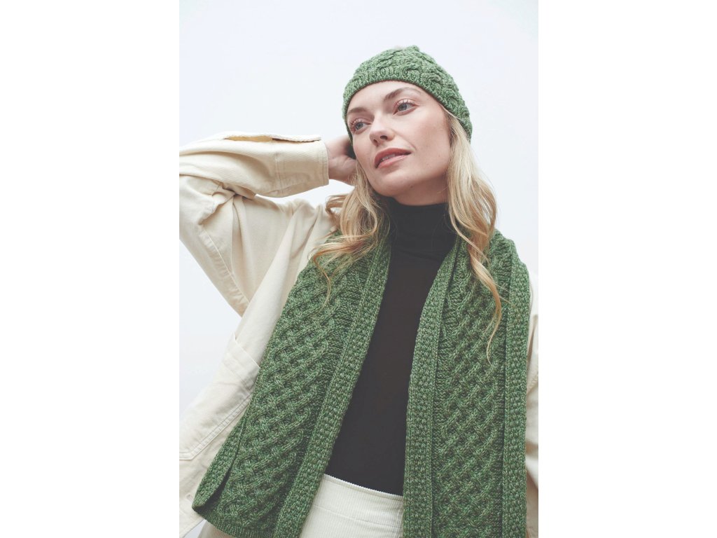 Šála z merino vlny vychází z tradičního irského úpletu. Střed tvoří motiv trellisu a po stranách jej doplňuje vzor známý jako Tree of Life, který se pojí s představou propojení a ochrany.