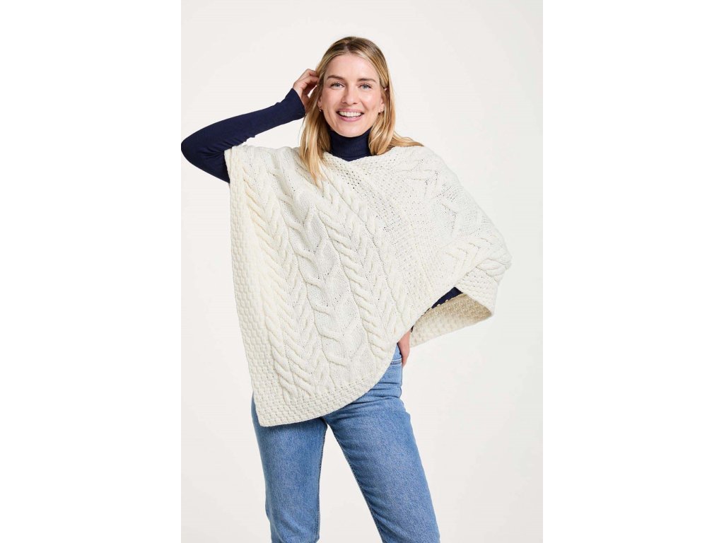 Pončo se pohodlně nosí, hřeje a přitom zůstává prodyšné. Vhodné pro každodenní nošení i volný čas, snadno se vrství přes svetr nebo košili. Díky svému střihu padne většině postav. Kombinuje tradiční aran motivy s moderním, nadčasovým vzhledem.