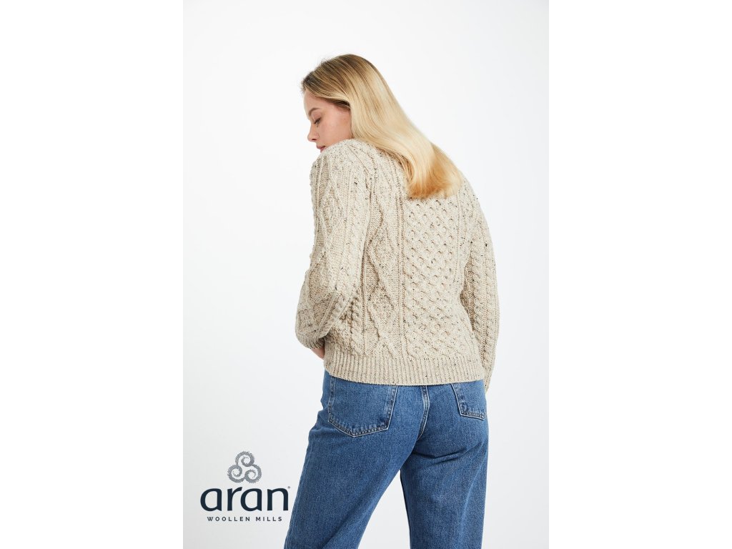 Dámský aranský svetr na knoflíky z česané vlny Heritage spojuje tradici irského úpletu s moderním, pohodlným zpracováním.