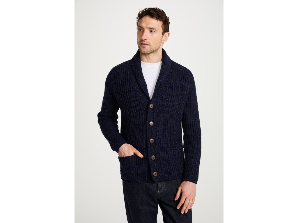 Pánský svetr na knoflíky z pravé donegalské vlny spojuje pohodlí tradičního rybářského úpletu s přirozenou elegancí.