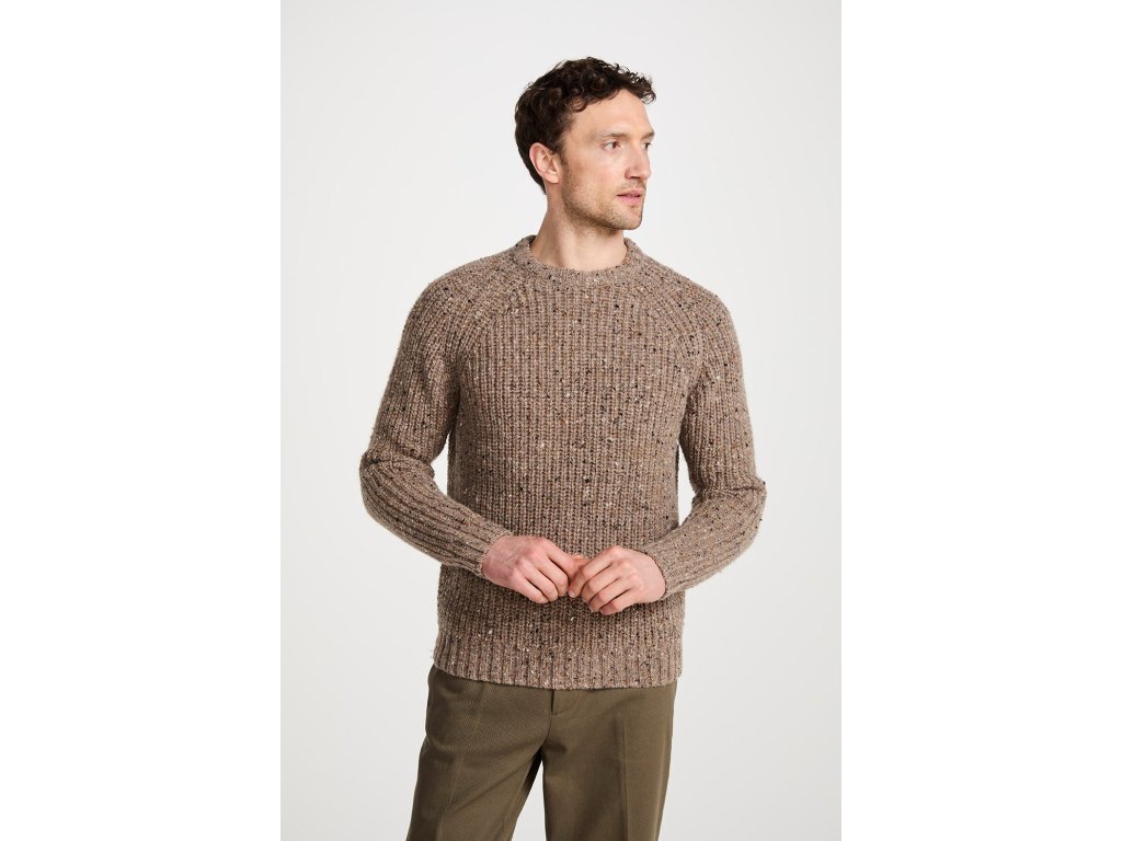 Pánský svetr z pravé donegalské vlny je upletený v klasickém rybářském žebrování, které mu dodává výraznou strukturu a pružnost. Díky typické neppované přízi má svetr jemný „tweedový“ vzhled s barevnými nopky, které podtrhují přirozený charakter irské vlny.