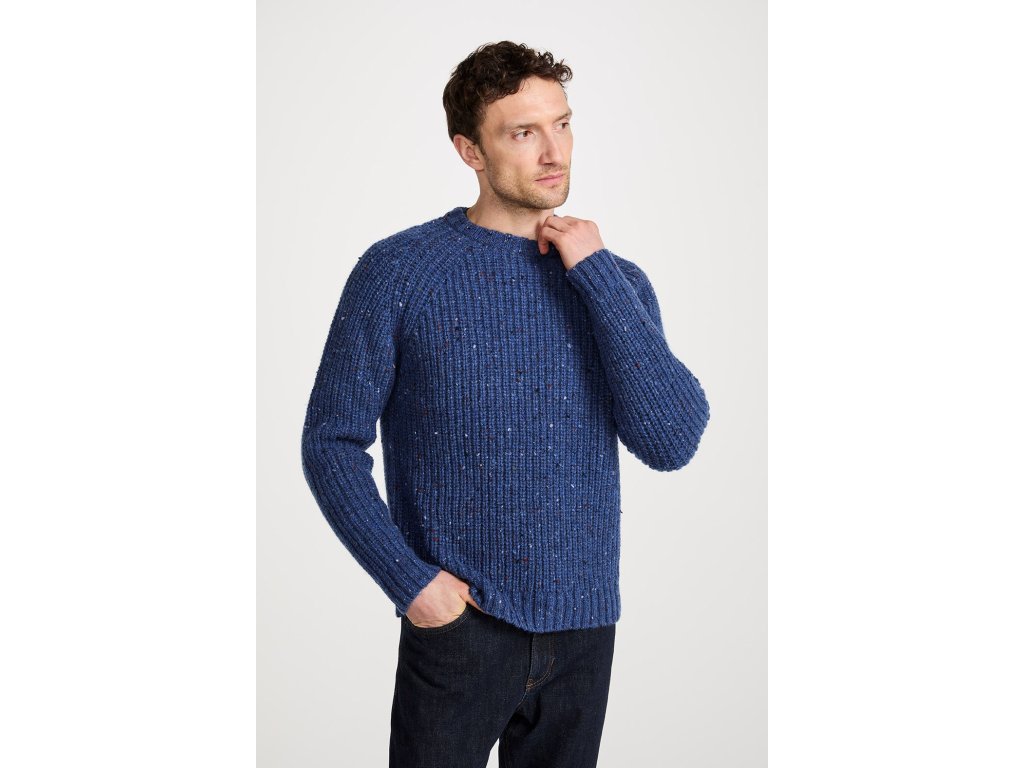Pánský svetr z pravé donegalské vlny je upletený v klasickém rybářském žebrování, které mu dodává výraznou strukturu a pružnost. Díky typické neppované přízi má svetr jemný „tweedový“ vzhled s barevnými nopky, které podtrhují přirozený charakter irské vlny.
