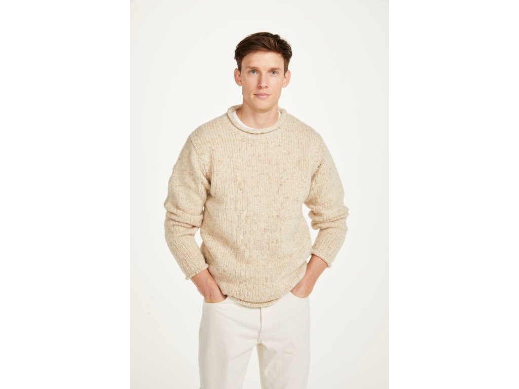 Svetr z pravé vlny navazuje na tradici drsných irských úpletů, které se nosily pro teplo, odolnost a charakter. Tento model zaujme typickou strukturou „tweedového“ povrchu s drobnými barevnými nopky, jež dávají každému kusu jedinečný vzhled. Přírodní vlna má výborné izolační vlastnosti, hřeje i za vlhka a přitom dýchá.