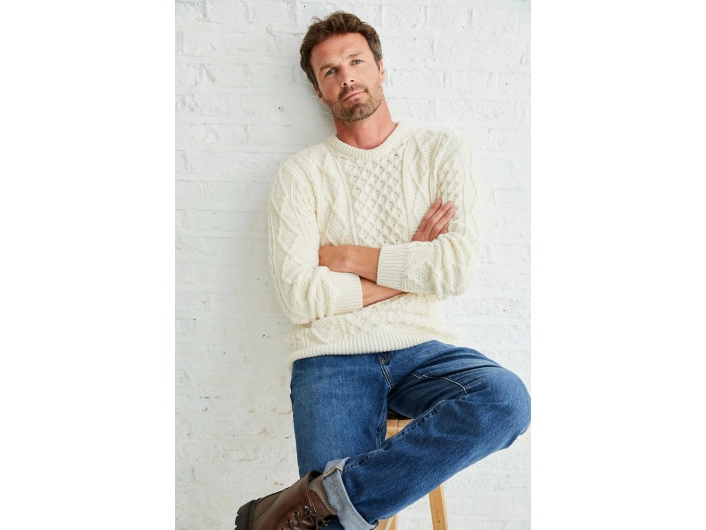 Irský svetr Éireann Mens Traditional Aran Supersoft Merino Sweater - Cream