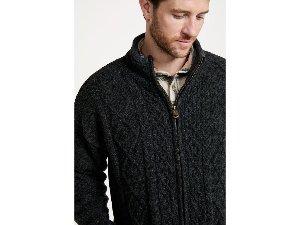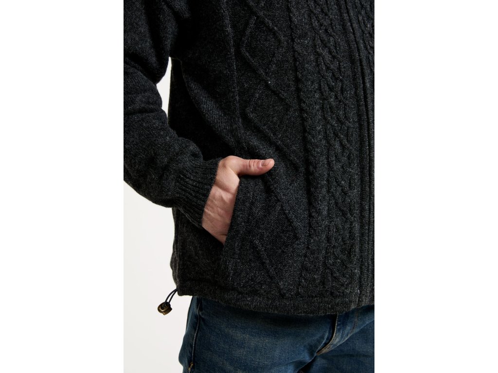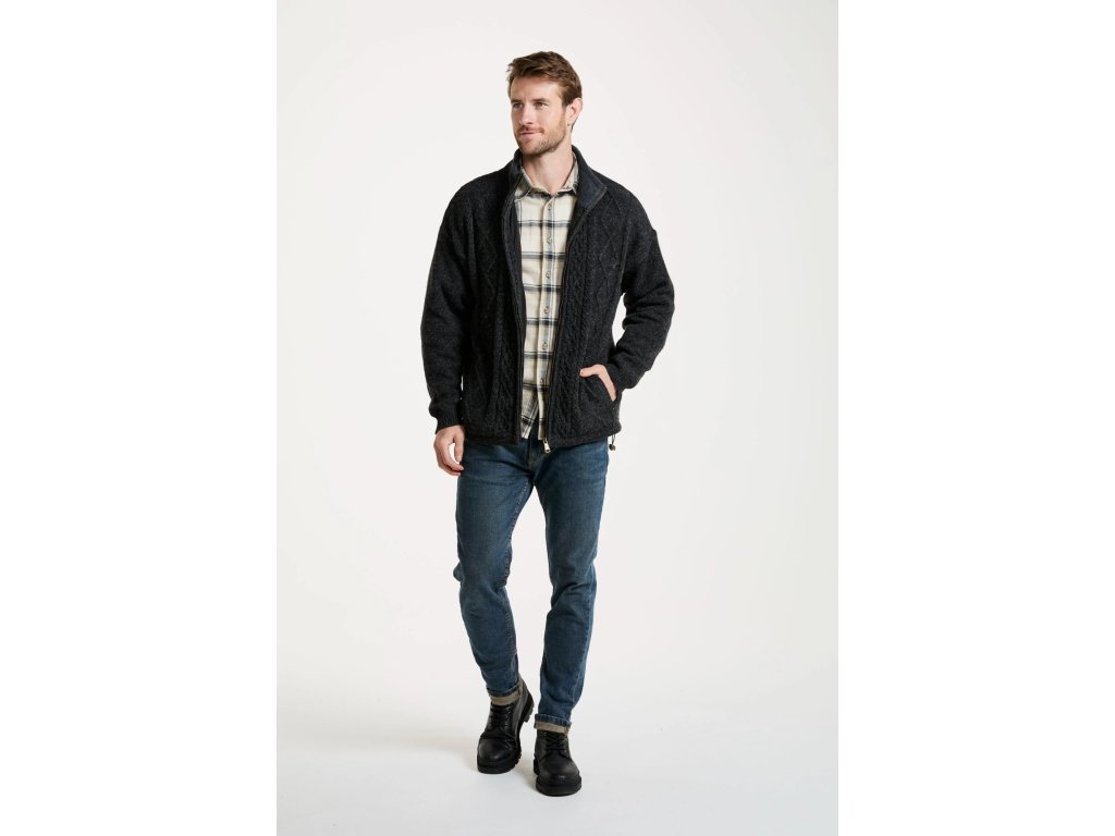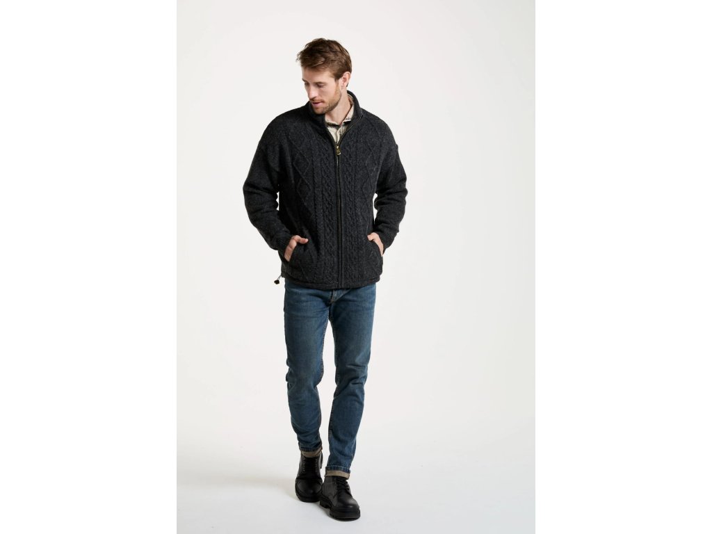 Stylový a hřejivý pánský kardigan z pravé irské vlny. Díky vnitřní podšívce poskytuje výjimečné teplo i v chladném počasí. Tradiční pletený vzor dodává svetru jedinečný charakter, inspirovaný irským řemeslem. Ideální pro každodenní nošení i volný čas.