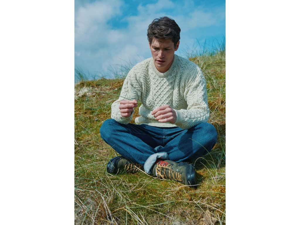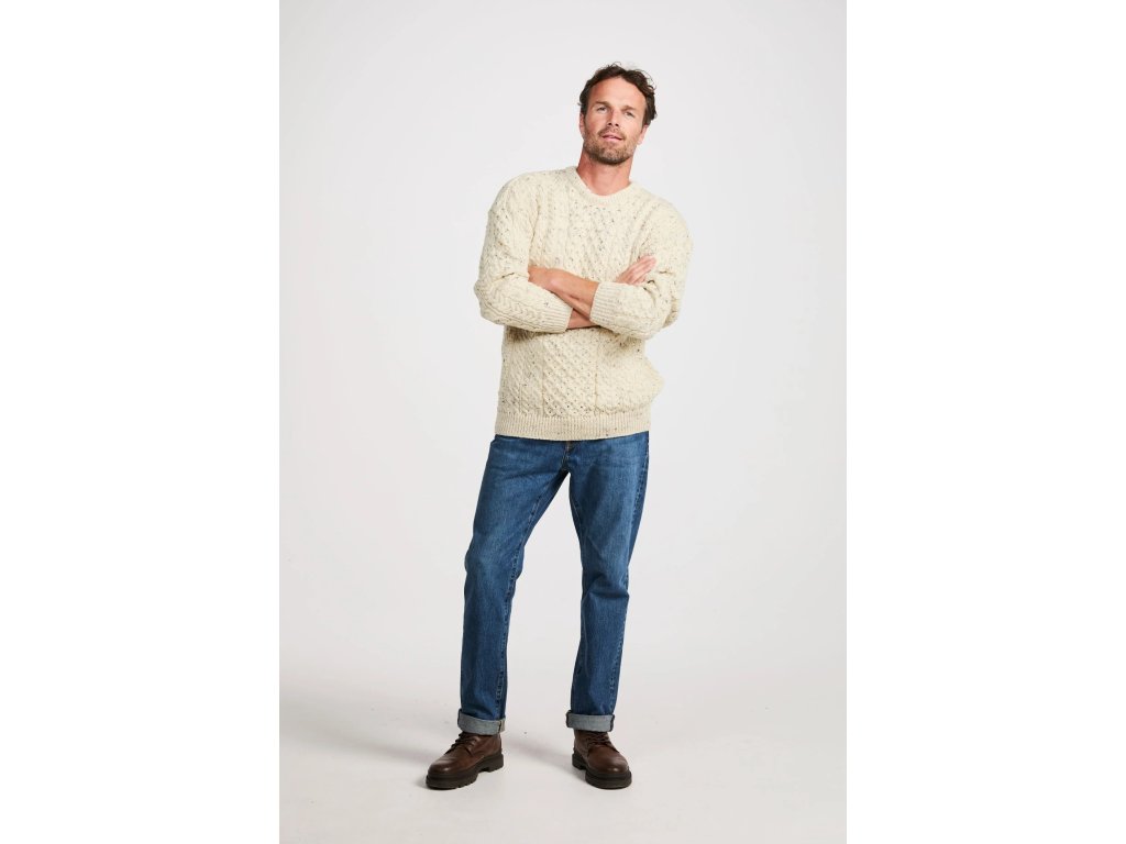 Irský svetr Inishbofin Mens Traditional Aran Sweater - Flecked Cream