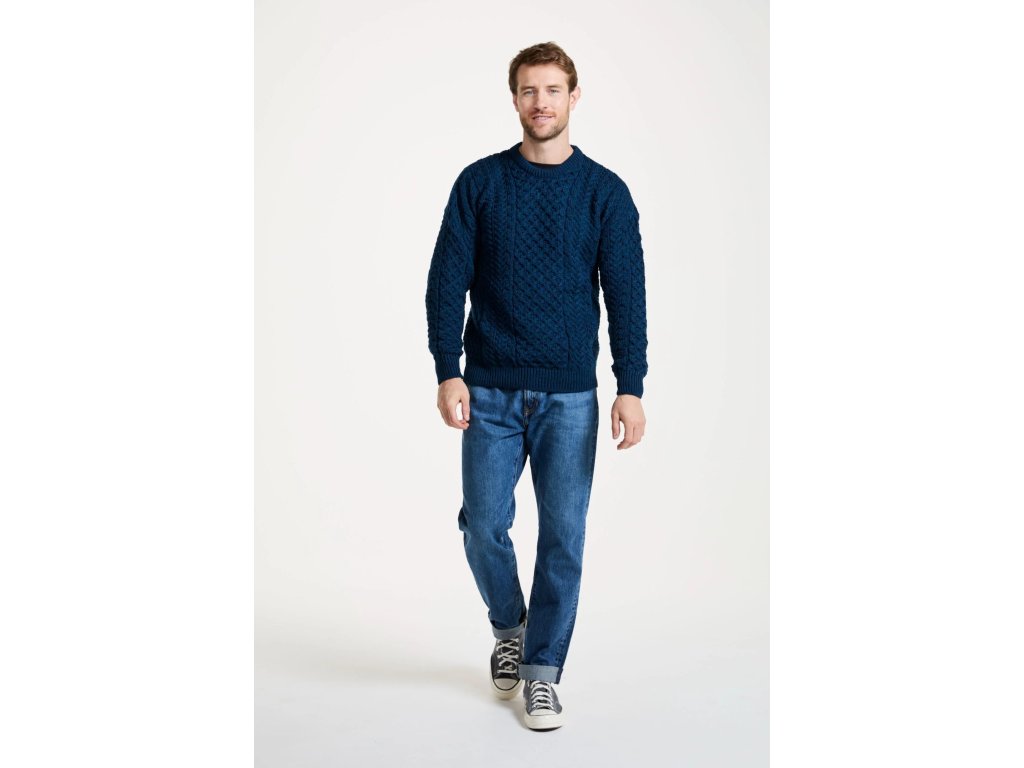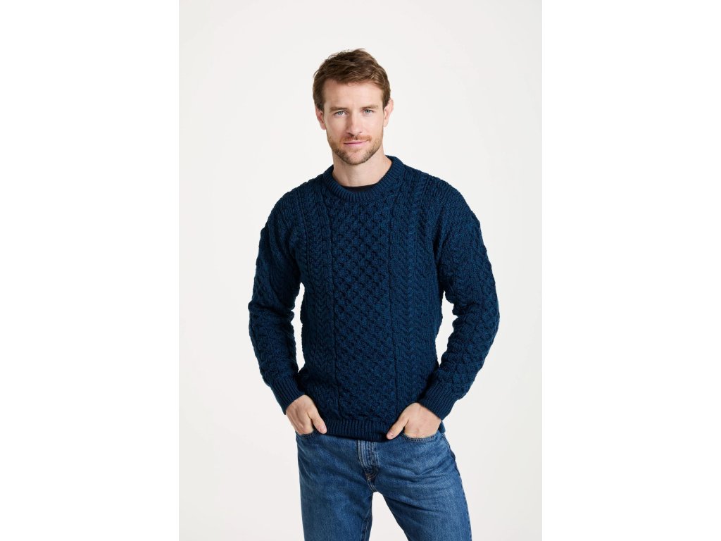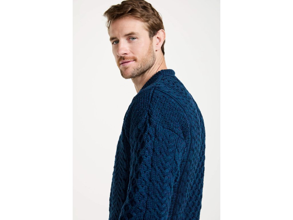 Irský svetr Inisheer Traditional Mens Merino Aran Sweater - Atlantic