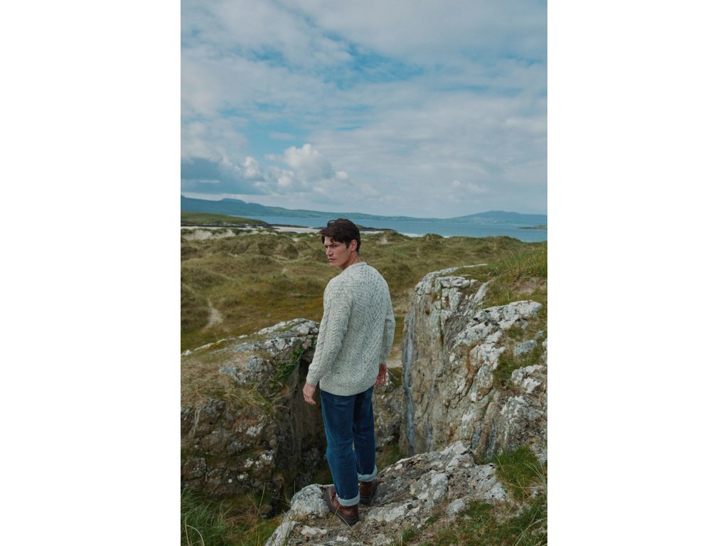 Svetr v sobě nese klasické prvky tradiční irské řemeslné výroby: bohaté pletené vzory, jako je lanový a diamantový steh, které symbolizují naději na úspěch a ochranu.