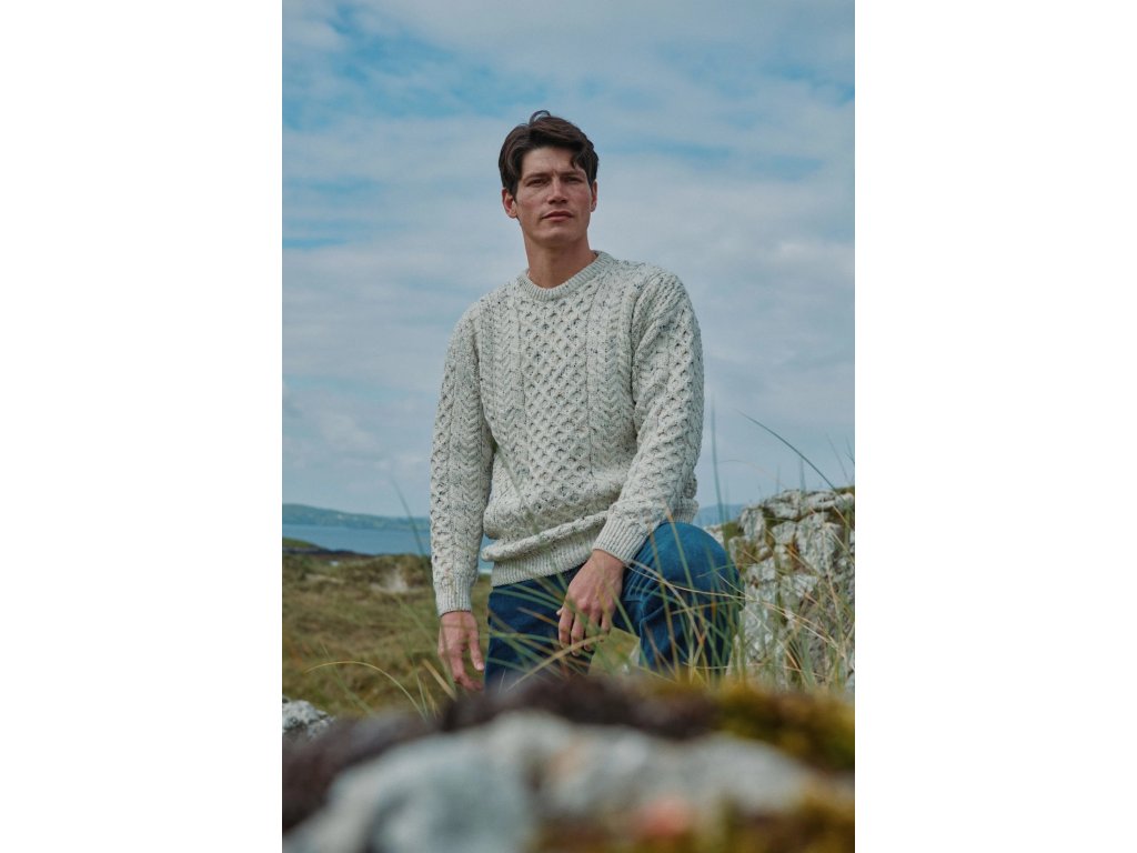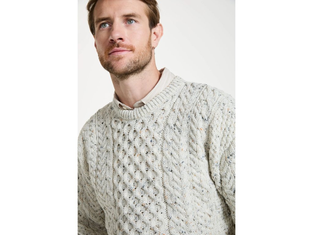 Irský svetr Inisheer Traditional Mens Merino Aran Sweater - Flecked Cream
