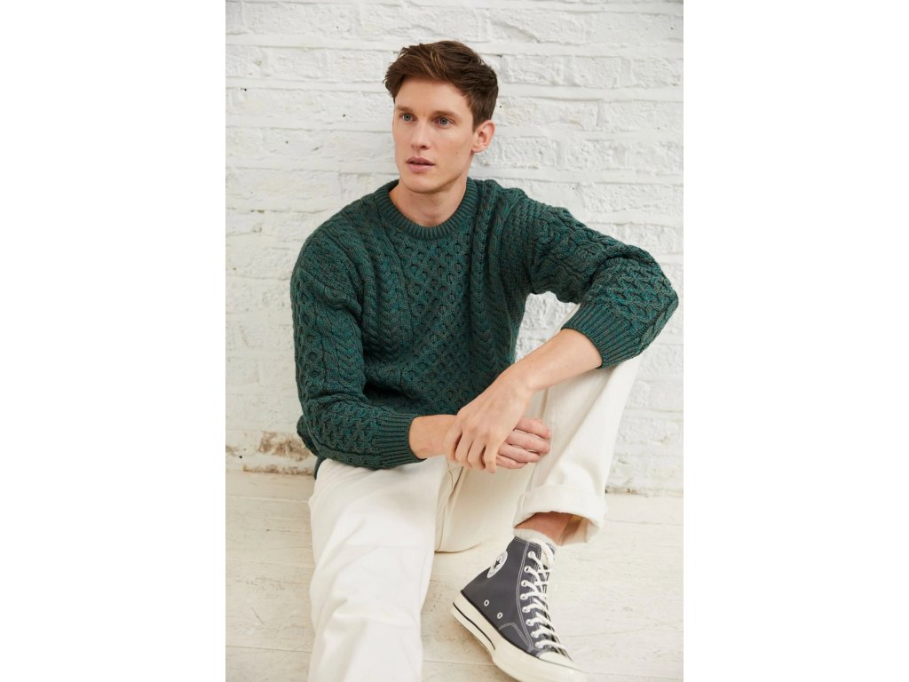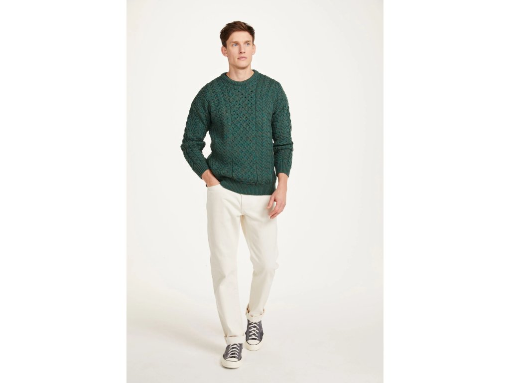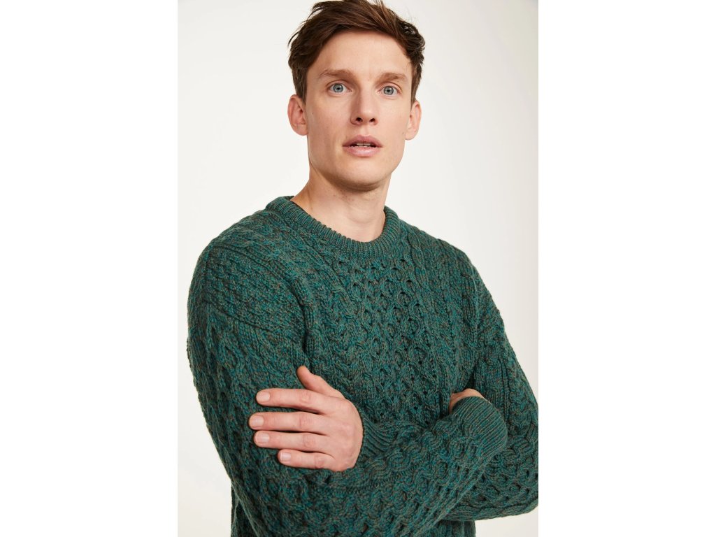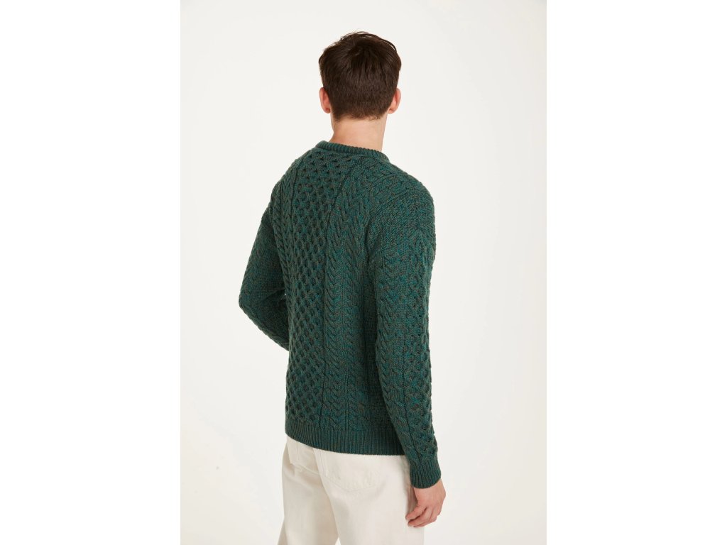 Irský svetr Inisheer Traditional Mens Merino Aran Sweater - Green