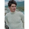 Irský svetr Kylemore Mens Aran Polo Neck Sweater - Cream
