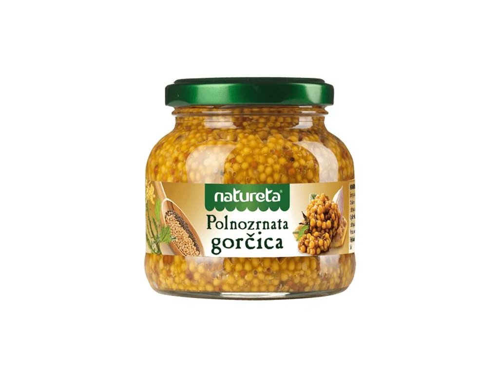 pitná voda, hořčičná semínka 30 %, bílý ocet, jedlá sůl, vinný ocet, cukr, koření, přírodní aroma, barvivo: riboflavin. ALERGENY: hořčičná semínka. MŮŽE OBSAHOVAT: Neuvádí se. Produkt neobsahuje geneticky modifikované látky. Skladujte a uchovejte při teplotě od + 1 °C do + 20 °C. Po otevření uchovejte v chladničce a spotřebujte do několika dní. Země původu: Slovinsko.