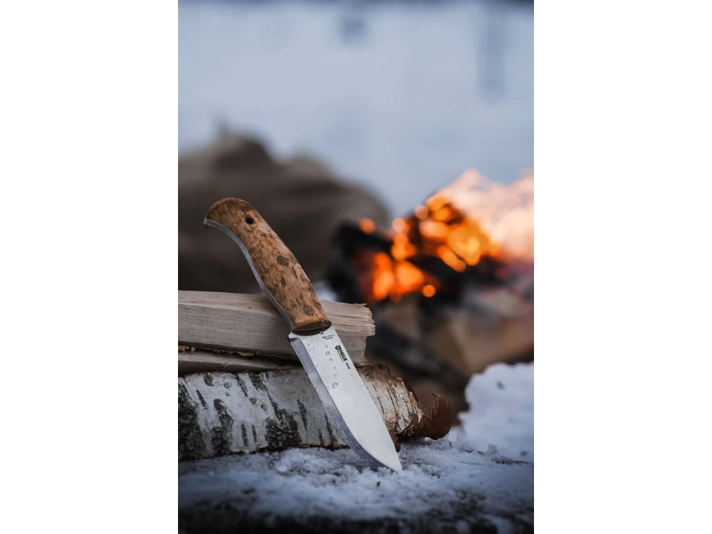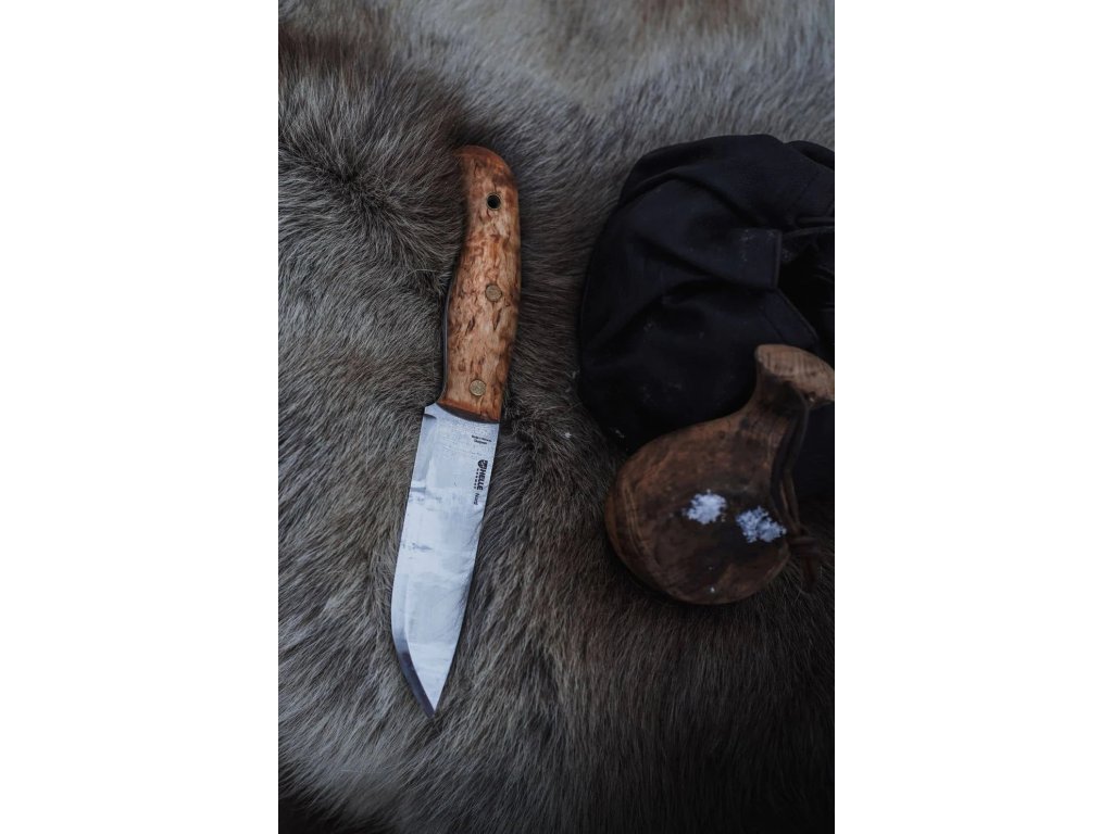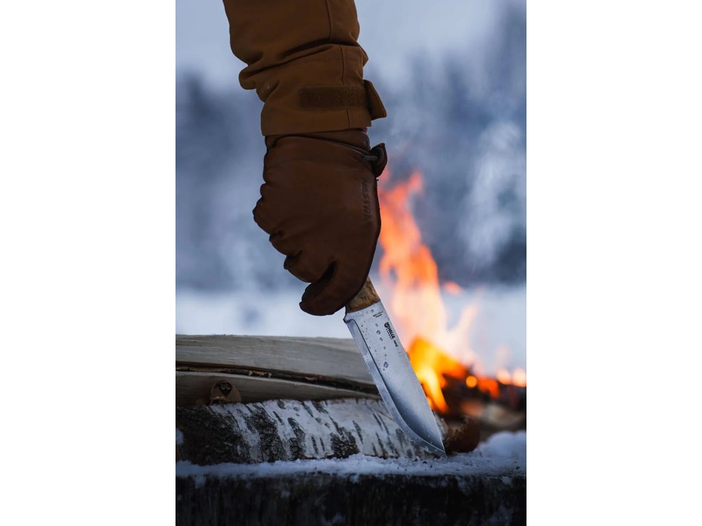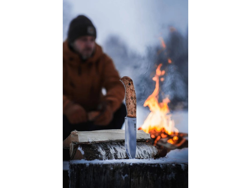 Rukojeť z křivolakého březového dřeva je ergonomicky tvarovaná a výborně padne do ruky. S délkou čepele 147 mm a celkovou délkou 273 mm je Nord jedním z největších nožů Helle – ideální pro táboření, bushcraft a dobrodružství v divočině.