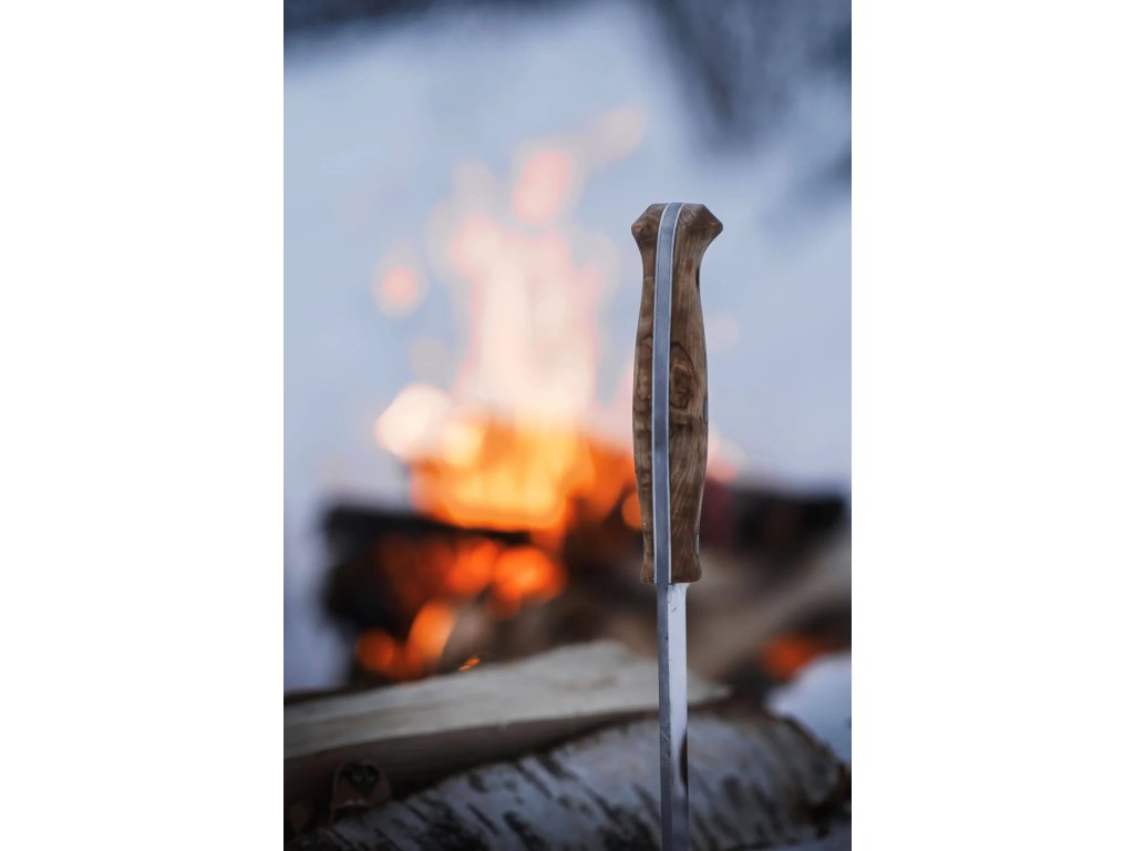 Model Helle Nord byl navržen jako skutečně univerzální nůž pro outdoorové použití. Velká čepel z oceli Sleipner s vysokou houževnatostí a odolností proti opotřebení si poradí s náročnými úkoly – od sekání dřeva po jemné řezání. Díky kombinovanému výbrusu Scandi a jemné fazetě se výborně ovládá a snadno se udržuje ostrý.