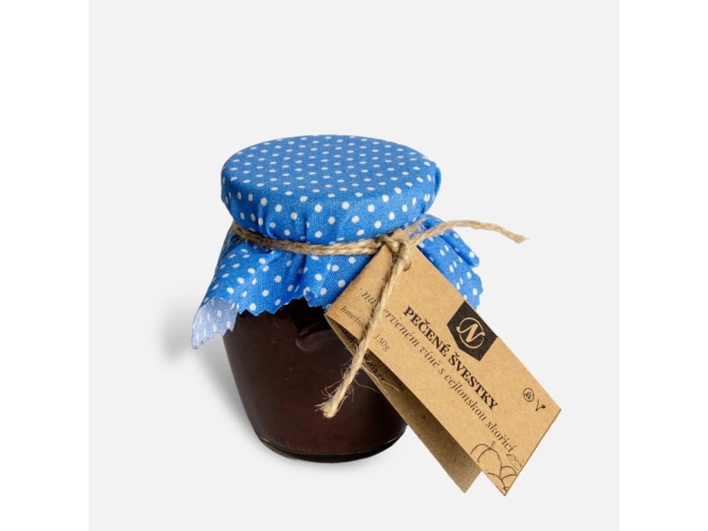Marmoleta Pečené švestky na červeném víně nabízí bohatou chuť švestek, jemně doplněnou červeným vínem a lehkým nádechem citronu. Tento produkt je skvělý jako doplněk k sýrům, masům nebo na pečivo a dodá pokrmům lahodně plnou ovocnou chuť. Vyrobeno s láskou v ČR, bez umělých konzervantů.