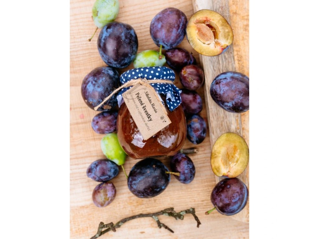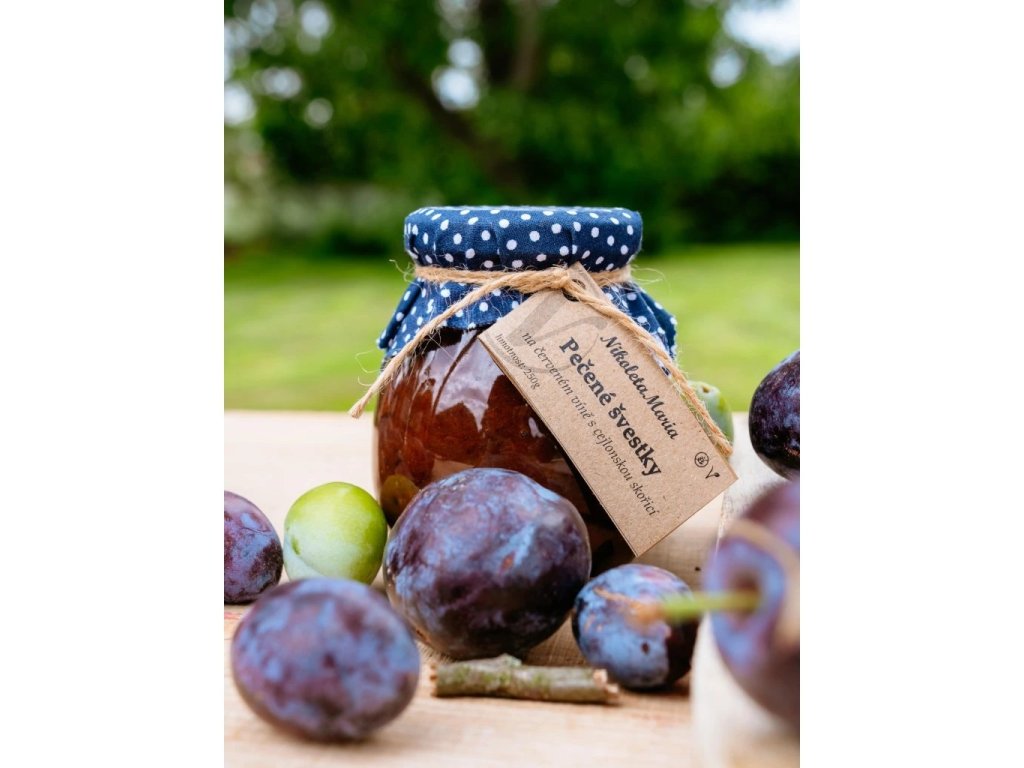 Marmoleta Pečené švestky na červeném víně nabízí bohatou chuť švestek, jemně doplněnou červeným vínem a lehkým nádechem citronu. Tento produkt je skvělý jako doplněk k sýrům, masům nebo na pečivo a dodá pokrmům lahodně plnou ovocnou chuť. Vyrobeno s láskou v ČR, bez umělých konzervantů.