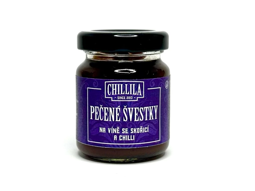 Pečené švestky na červeném víně se skořicí a chilli 60 ml