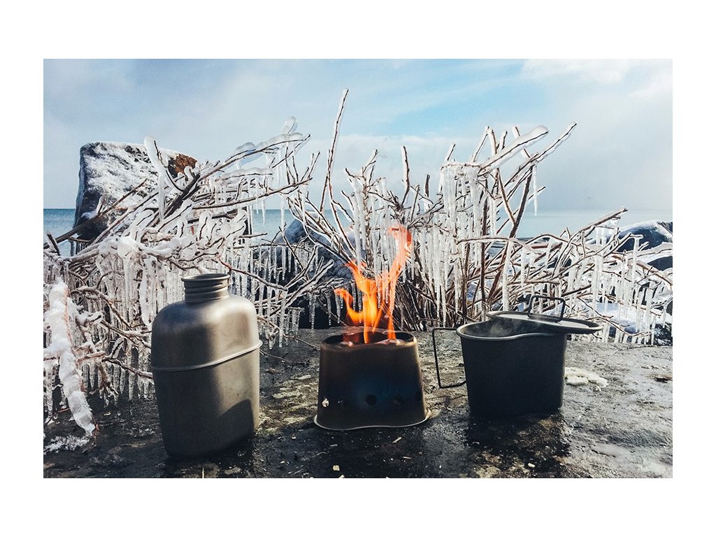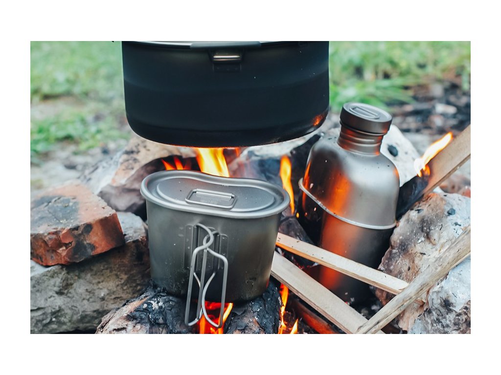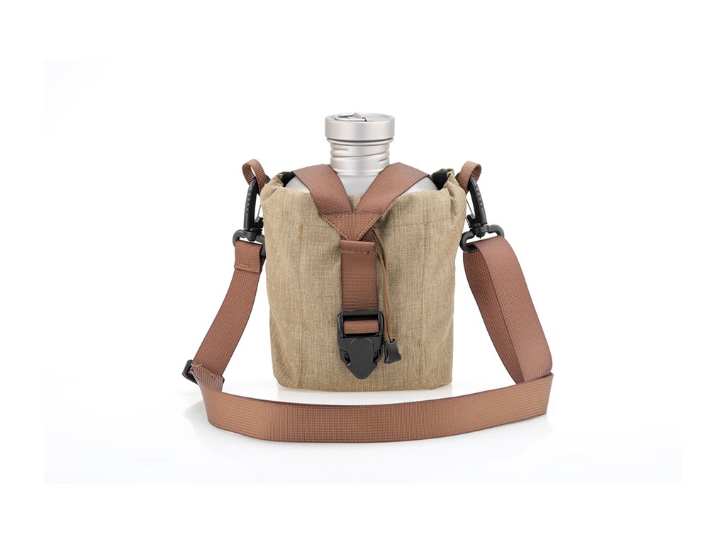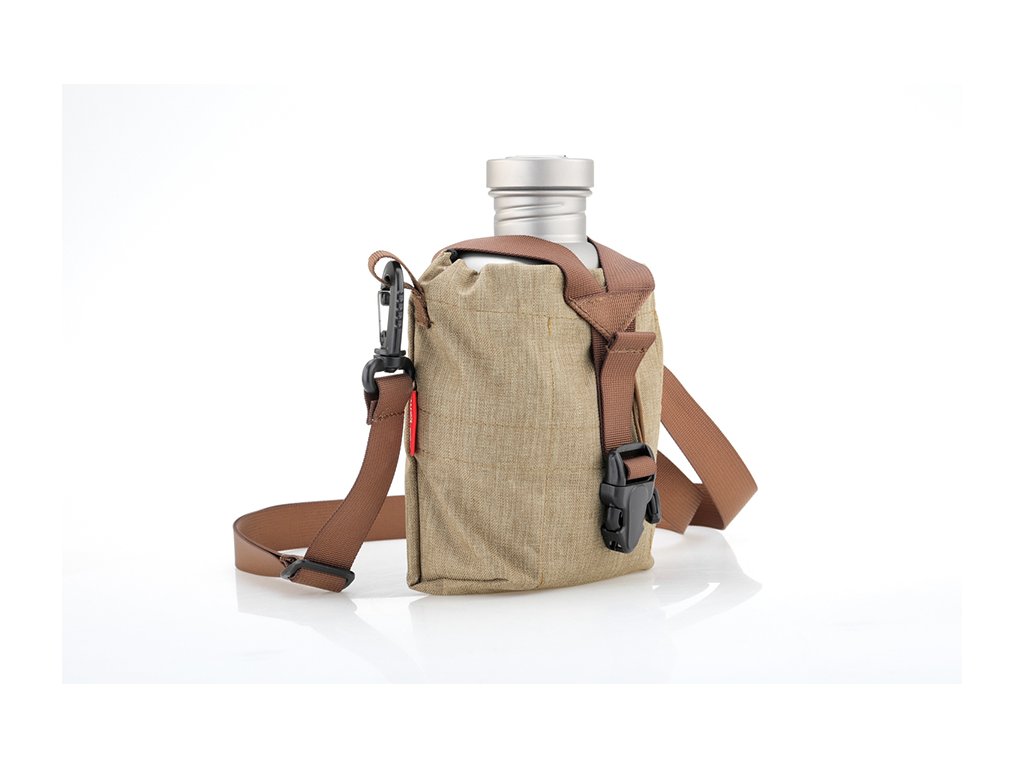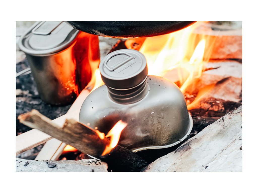 - Tato sada na vaření obsahuje láhev, nádobu na ohřev, držák pro manipulaci nad ohněm a praktický obal. Obal má popruh a celá sada se tedy dá snadno přenášet hozená přes rameno. Díky použitému materiálu je celá sada extrémně lehká.