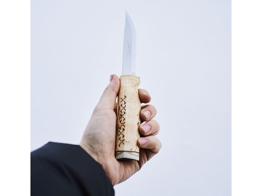 Zdobená rukojeť z finské kadeřavé břízy a kosti sobího parohu je dokonalostí skandinávského designu. Wild Reindeer 11 vzdává hold tradicím severu ve stylové a funkční podobě.